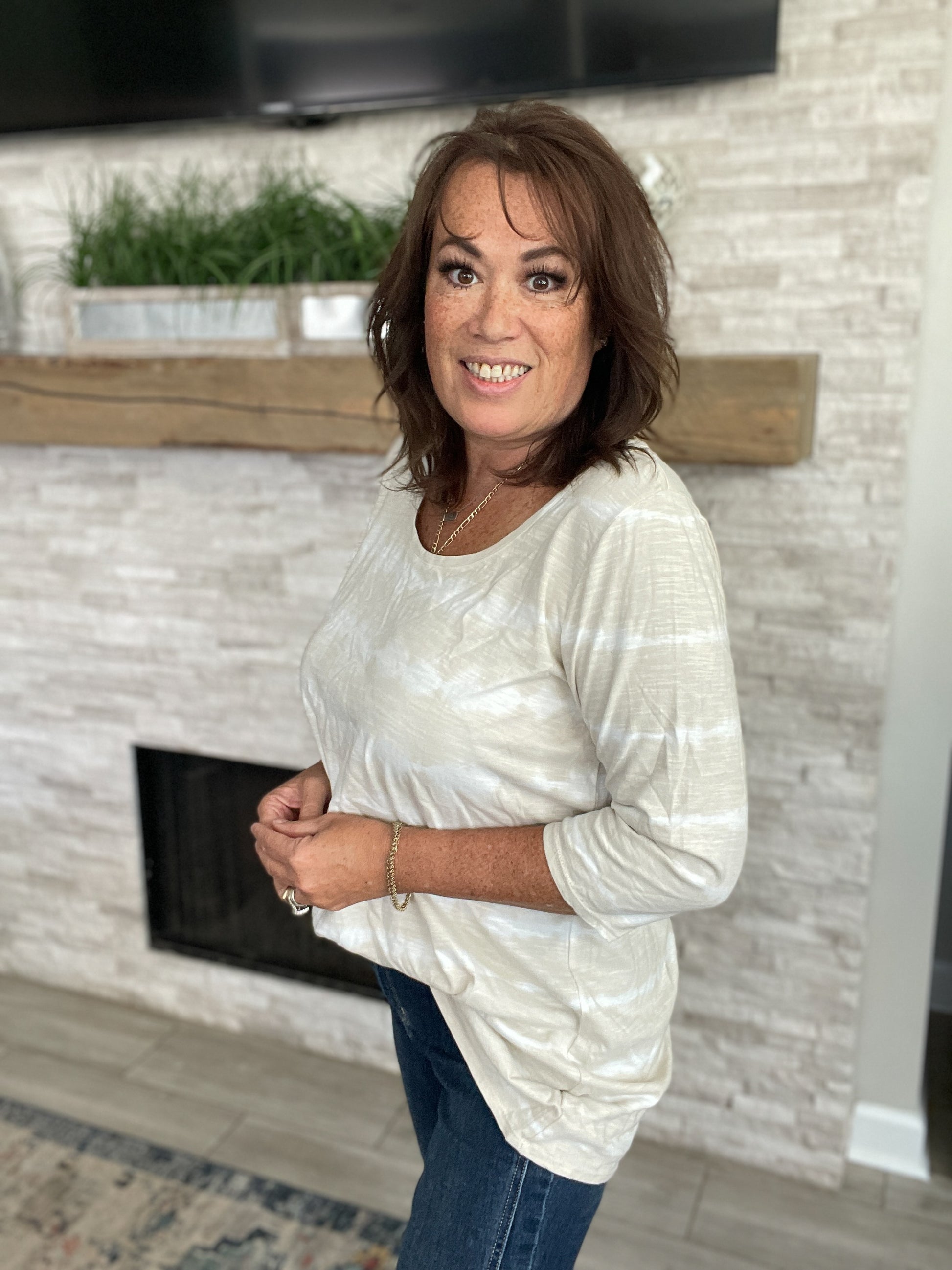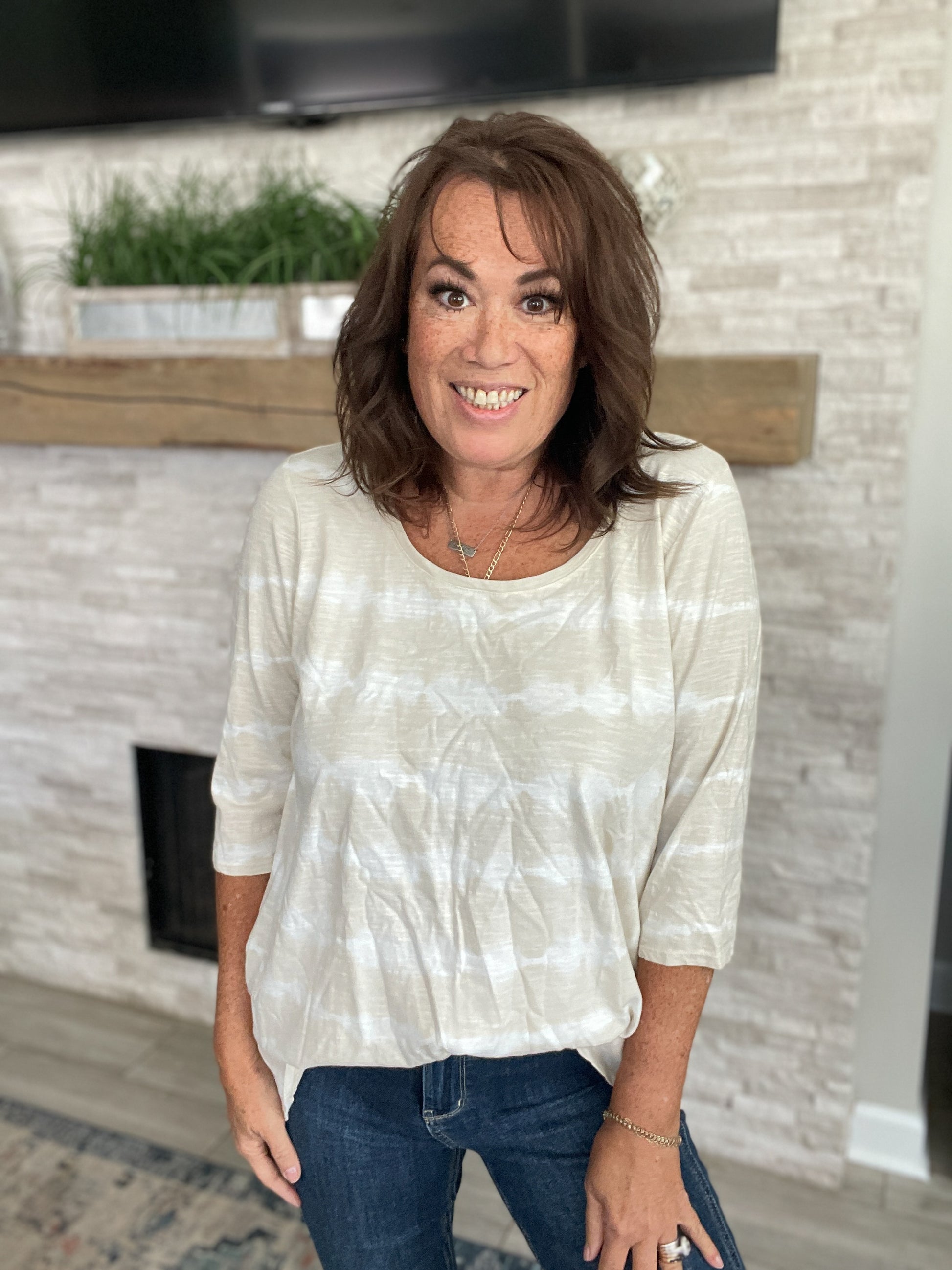 J Jill Pure Jill Ballet Sleeve Beige Striped Tunic