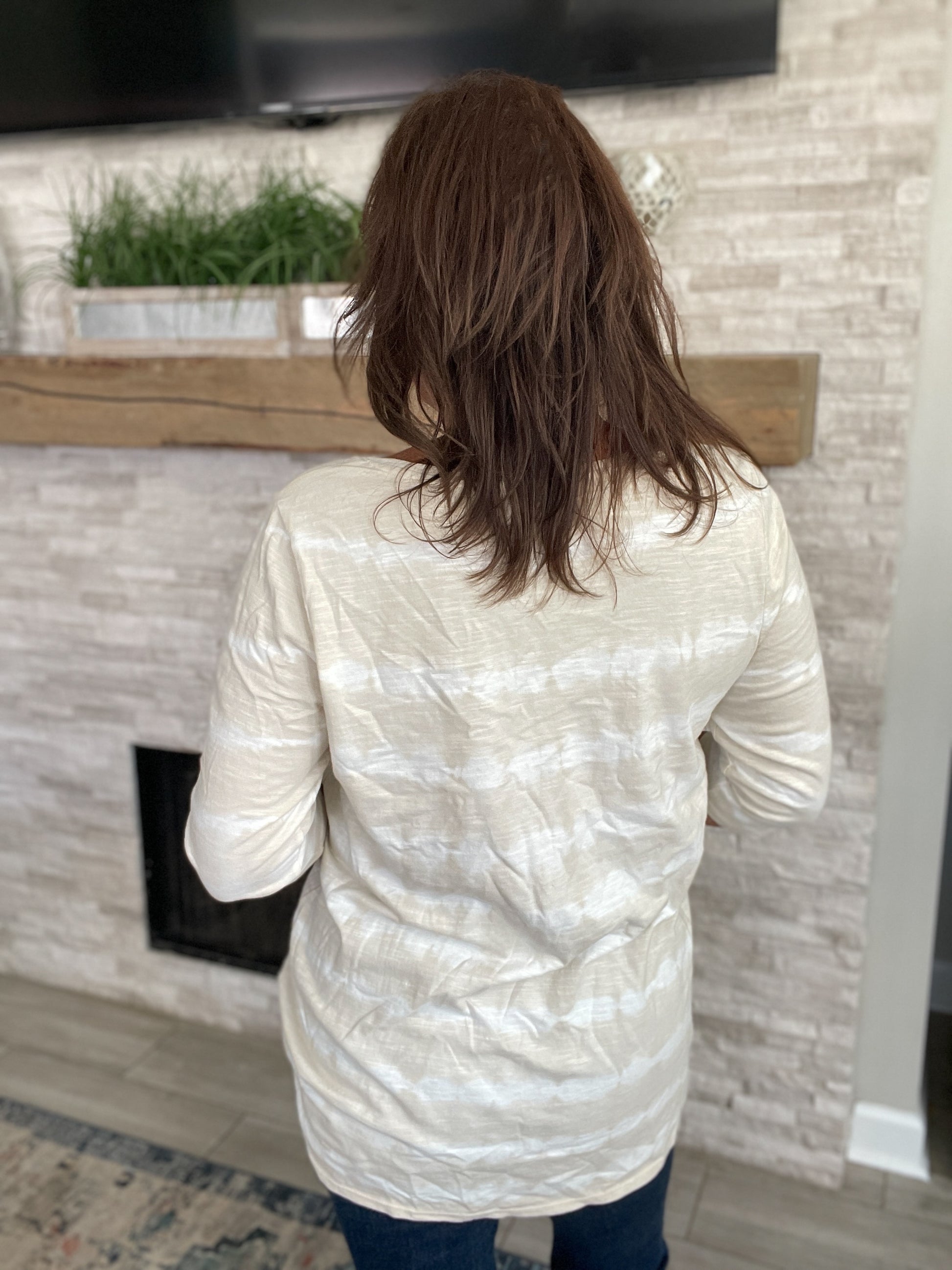 J Jill Pure Jill Ballet Sleeve Beige Striped Tunic - Size Large