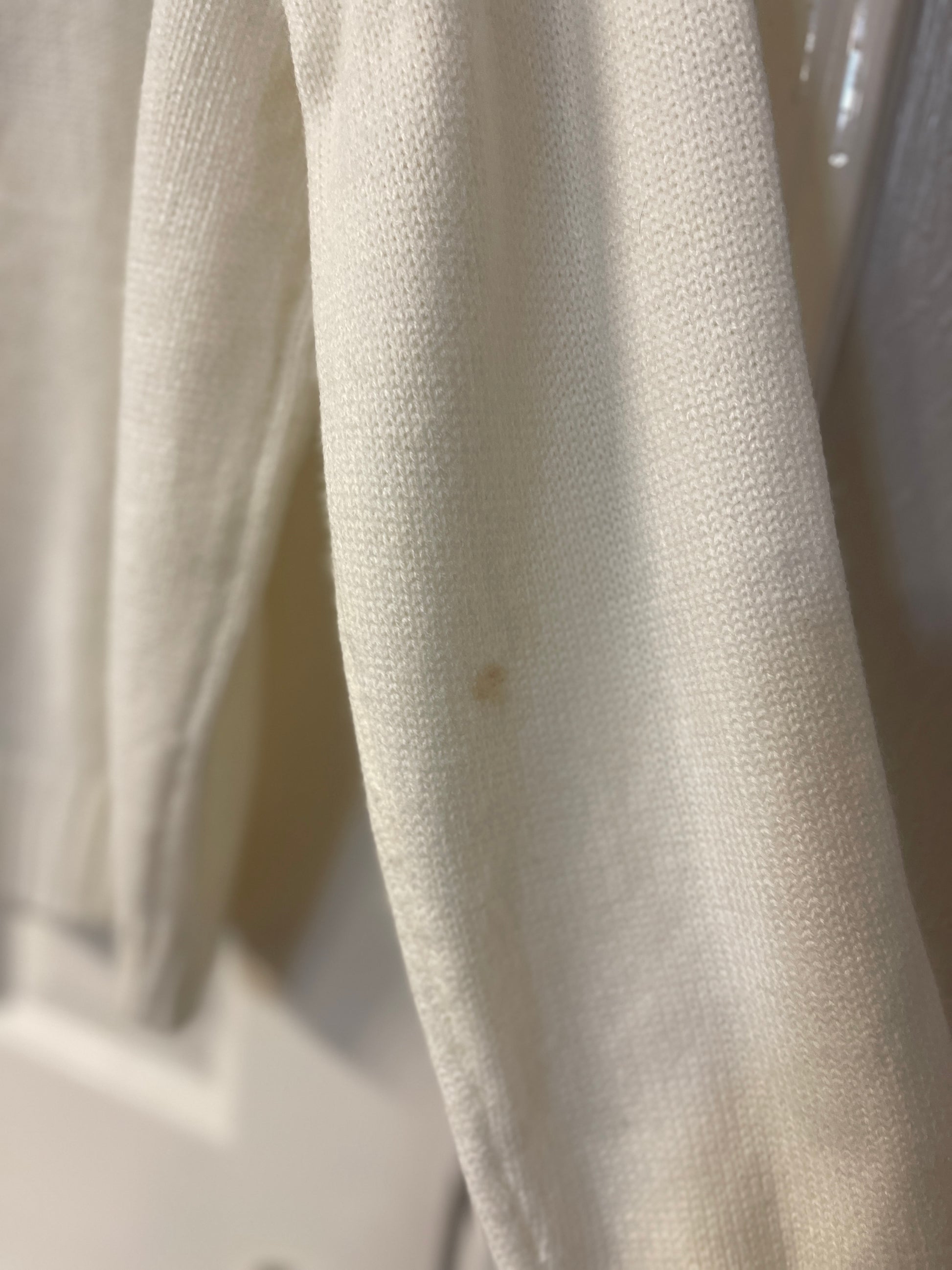- White Acrylic Button Front Cardigan With Jewel Buttons Down the Front