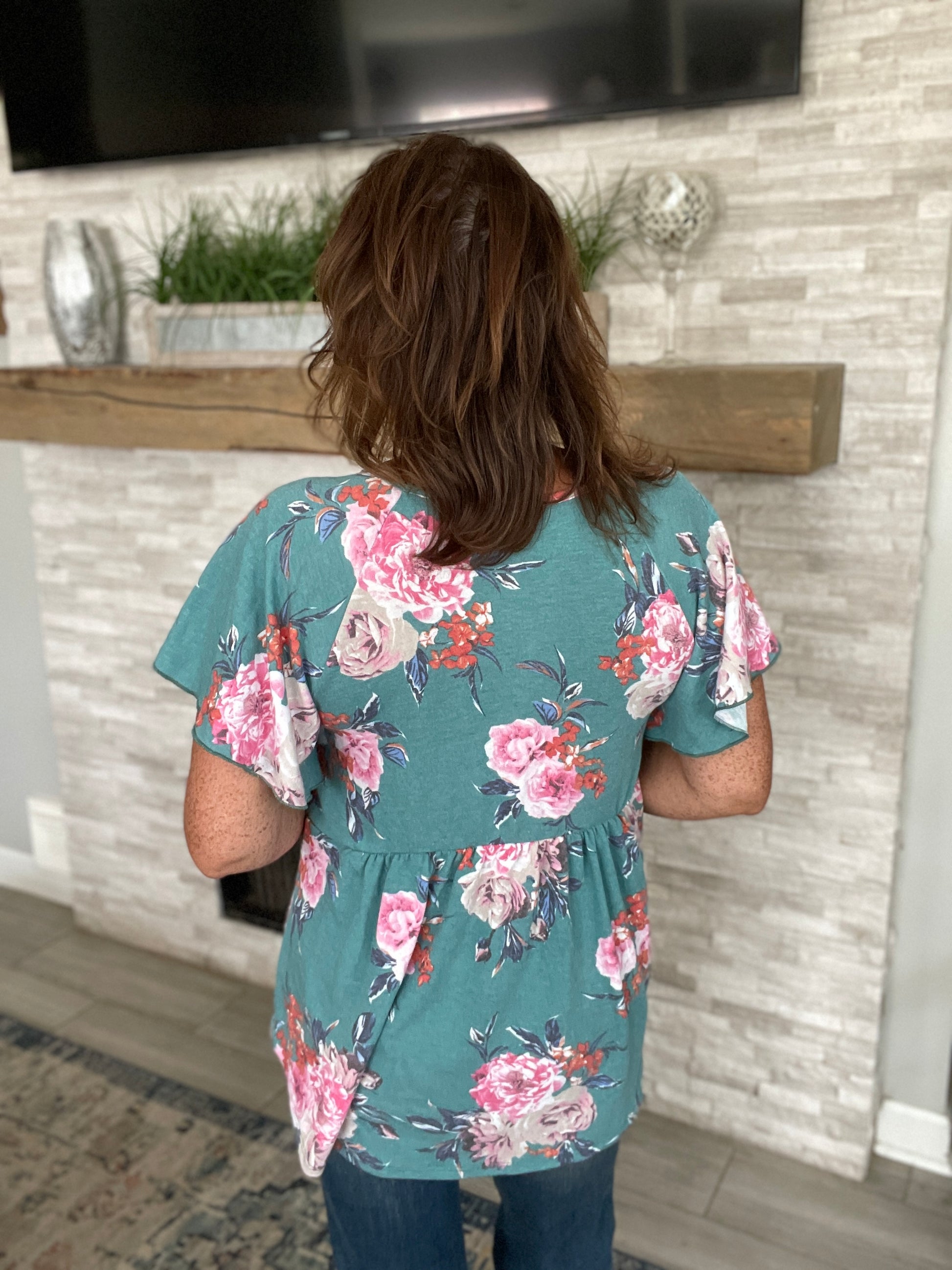 Teal Floral Babydoll Top
