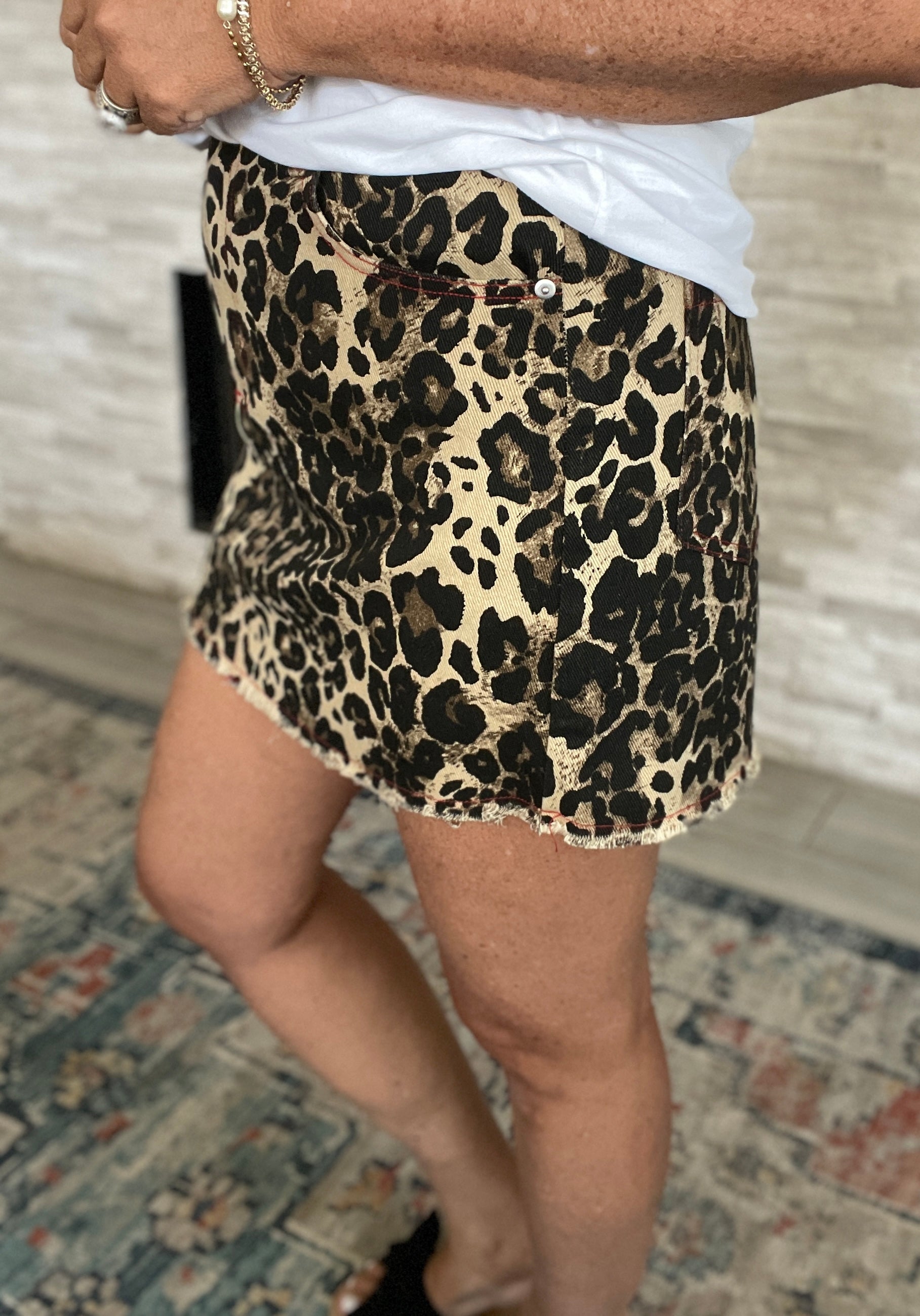Washed Leopard Denim Mini Skirt